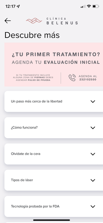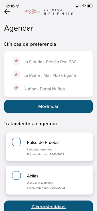 Mi Belenus를 사용하면 사용자는 치료 시간을 예약하고 사용 가능한 세션을 확인하며 원하는 클리닉을 선택하고 예약을 검토, 수정 또는 취소할 수 있습니다. 추가로 사용자는 개인 프로필을 생성하여 향후 예약을 더욱 빠르게 할 수 있습니다.
